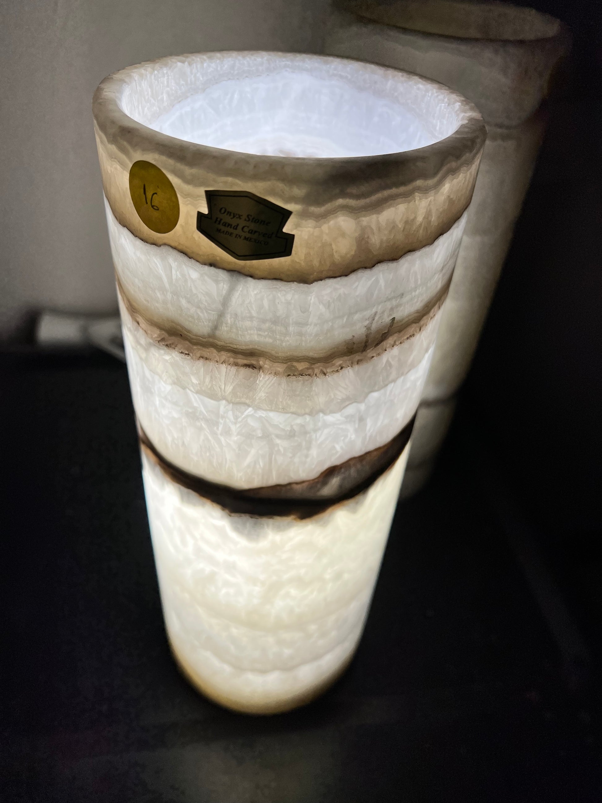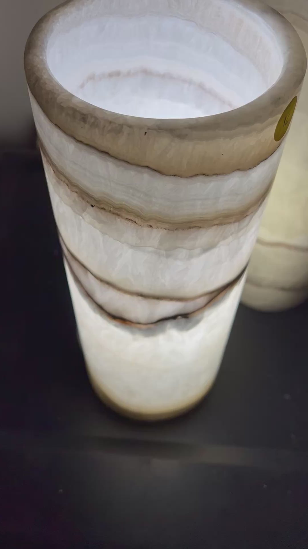 Cylinder Pillar-Banded White W/ Brown Onyx Lamp/ elegant Stone Desk Lamp/ Table Lamp/One of a kind Lamp/Home Decor /Night Lamp12X5"Gift for her