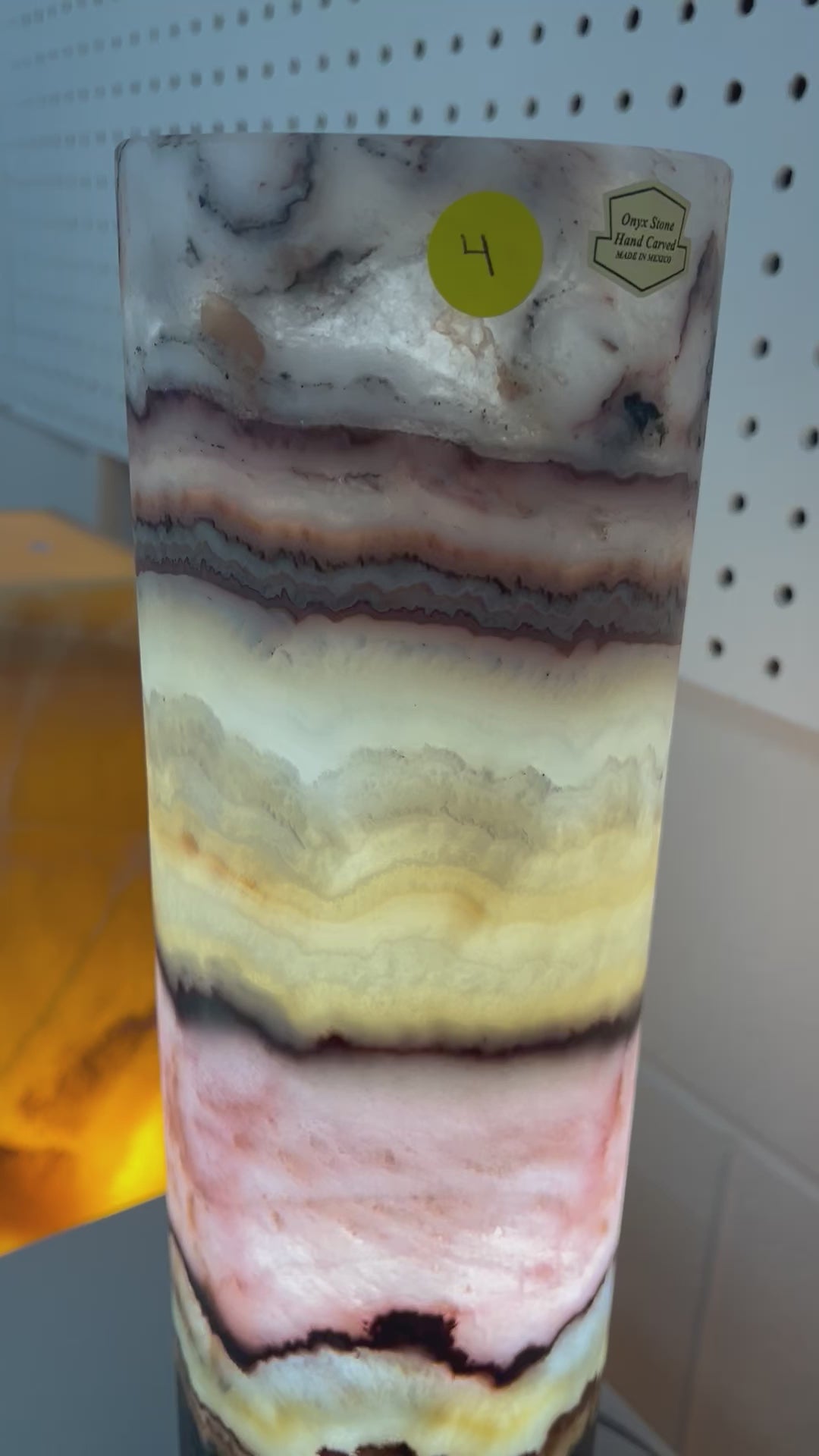 Hand Carved Pink Serpentine Onyx Cylinder Lamp 15.5"X5"/Pink Crystal Lamp/Crystal Lamp/Crystal Tower Lamp-Perfect Gift for her/Gift for Mom