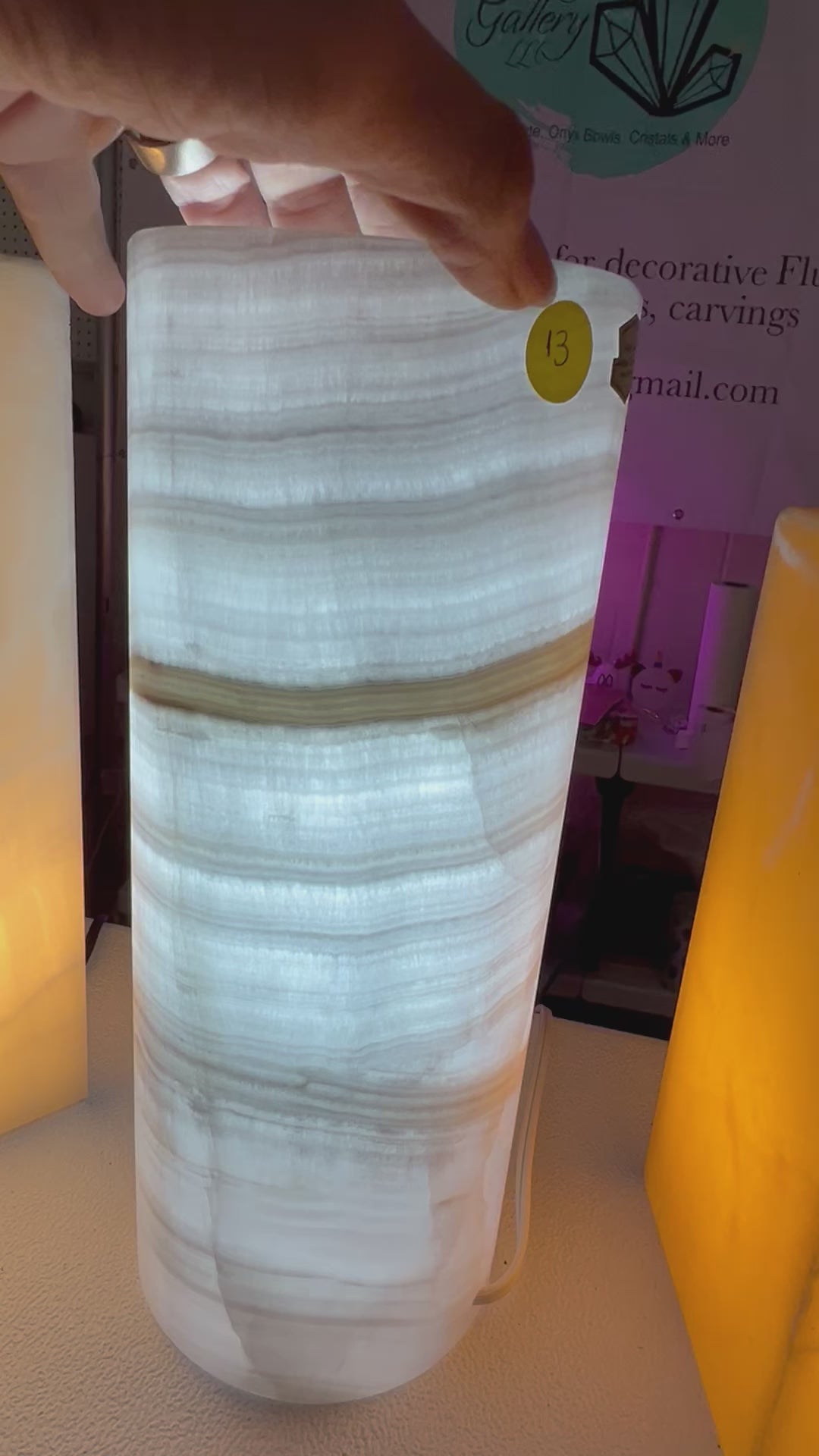 Translucent White Onyx Pillar Cylinder Lamp/Elegant Stone Lamp/ Table Lamp/One of a kind Lamp/Exquisite Lamp/Night Lamp12X5"Gift for her